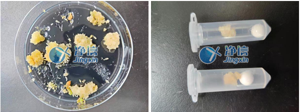 上圖為1分鐘的研磨效果,已經(jīng)完全研磨完成。效果非常好,老師要求愈傷研磨一定要凍液氮,否則rna可能降解,所以人工研磨特別不方便,經(jīng)過多次了解和對比所以老師們選用凈信研磨儀代替人工處理。效率高,效果好。解決了老師的研磨問題。