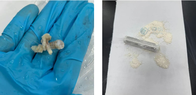 經(jīng)全自動液氮冷凍研磨儀處理后的大鼠股骨,成功變?yōu)榧?xì)膩粉末,無肉眼可見顆粒。后續(xù)檢測完全符合實驗要求。