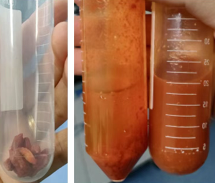 高速均質(zhì)刀頭在密閉環(huán)境中瞬間將枸杞果肉破碎至微米級(jí),細(xì)胞壁被充分打破。