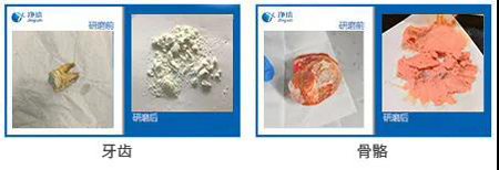 1、法醫(yī)骨骼牙齒粉碎儀對(duì)樣品的研磨實(shí)驗(yàn)案例效果圖