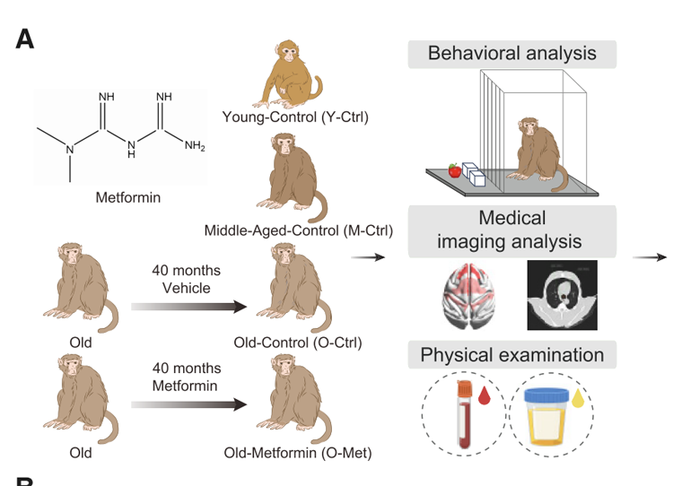 隨著全球人口老齡化的加劇,衰老及其相關疾病的防治成為亟待解決的重大科學問題。二甲雙胍作為一種經(jīng)典的降糖藥物,近年來被發(fā)現(xiàn)具有顯著的抗衰老效果。然而,其具體作用機制尚不明確。為了深入研究二甲雙胍對靈長類動物衰老的影響,劉光慧團隊展開了長達8年的研究。